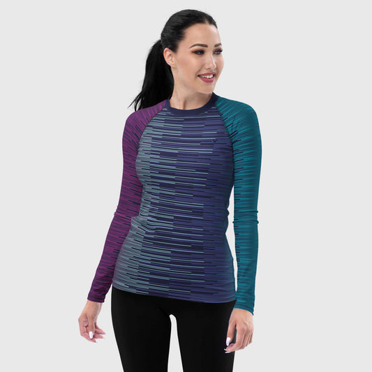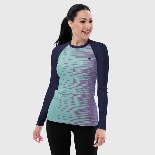 Rash Guard Azul Obscuro con Rayas Dual | Mujer