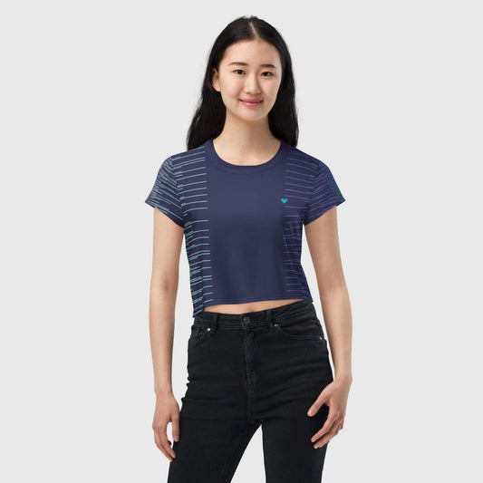 Playera Crop Azul Obscuro Rayas Dual | Mujer