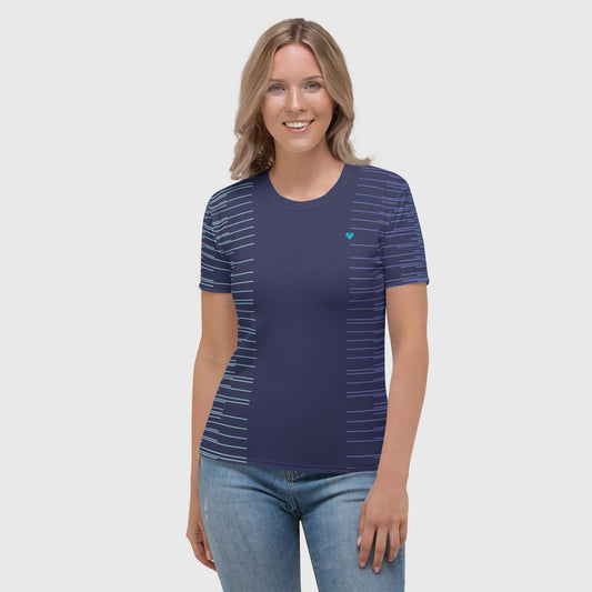 Playera Azul Obscuro Rayas Dual | Mujer